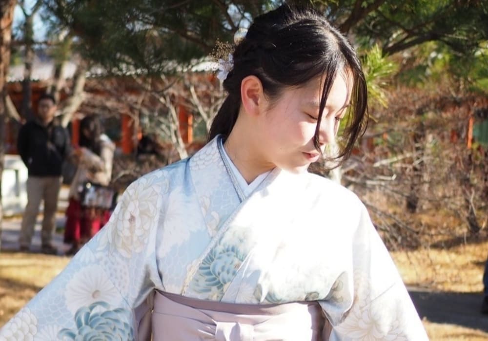 袴を自分で着装し弓道の大会に出場したときの写真です。高校時代は和装礼法部で和服の着用を練習していたので技能があり、一緒に出場する友人たちに教えながら準備しました。私は弓道を大学から始めた初心者で、教わる側にいることが多かったので、友人の役に立つことができてうれしかった思い出です。