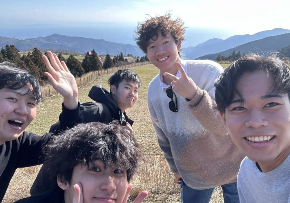 (本人:一番右)大学の友人と静岡へドライブに行ったときの写真です。行き先は大まかにエリアだけを決め、あとは気の向くままに車を走らせるのが好きです。伊豆半島の山道を走っていると、ふいに視界が開け、見晴らしの良い高台に出ました。その眺めの良さに思わず車を停め、その景色をゆっくりと満喫しました。